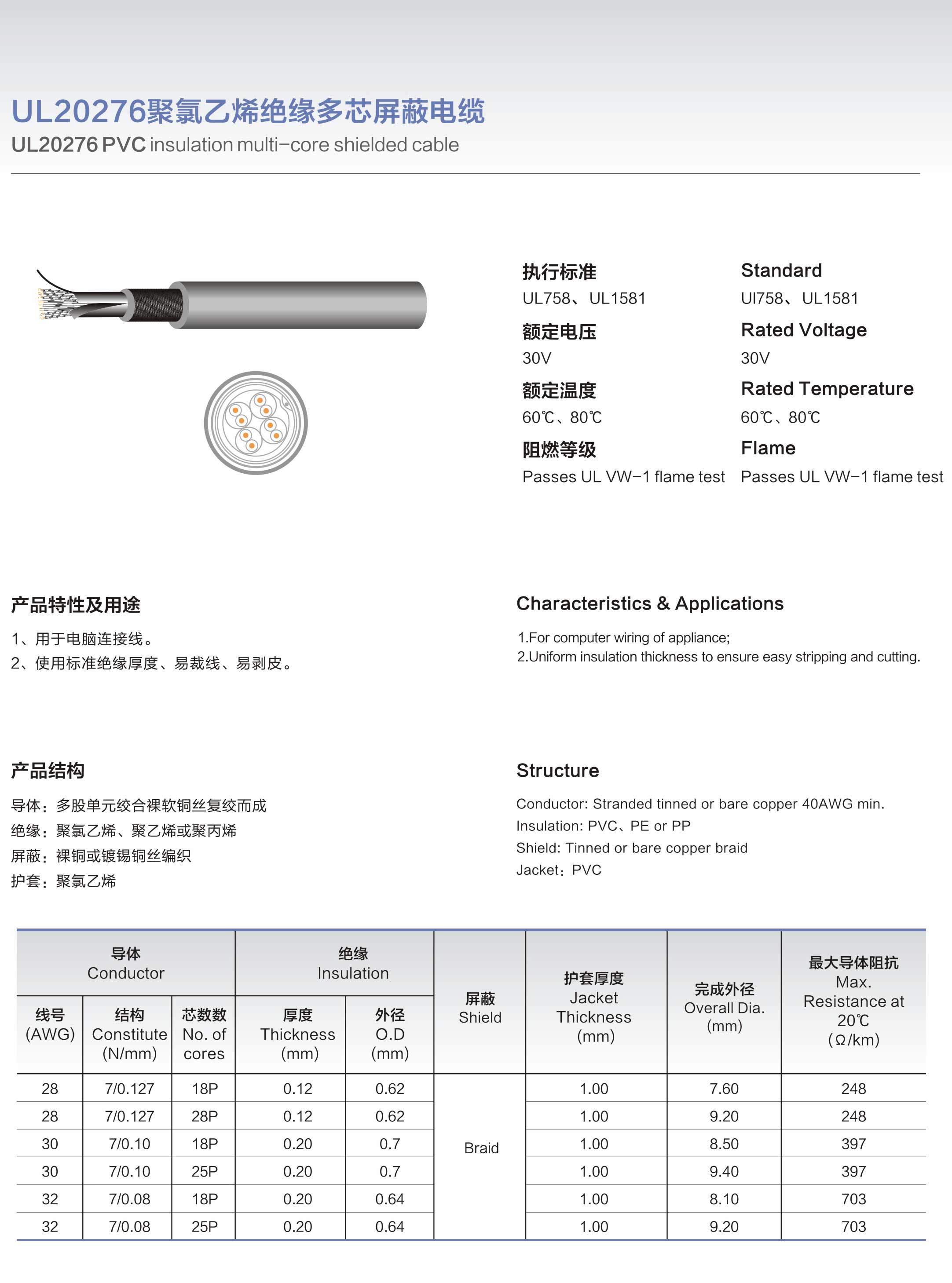 UL20276聚氯乙烯绝缘多芯屏蔽电缆