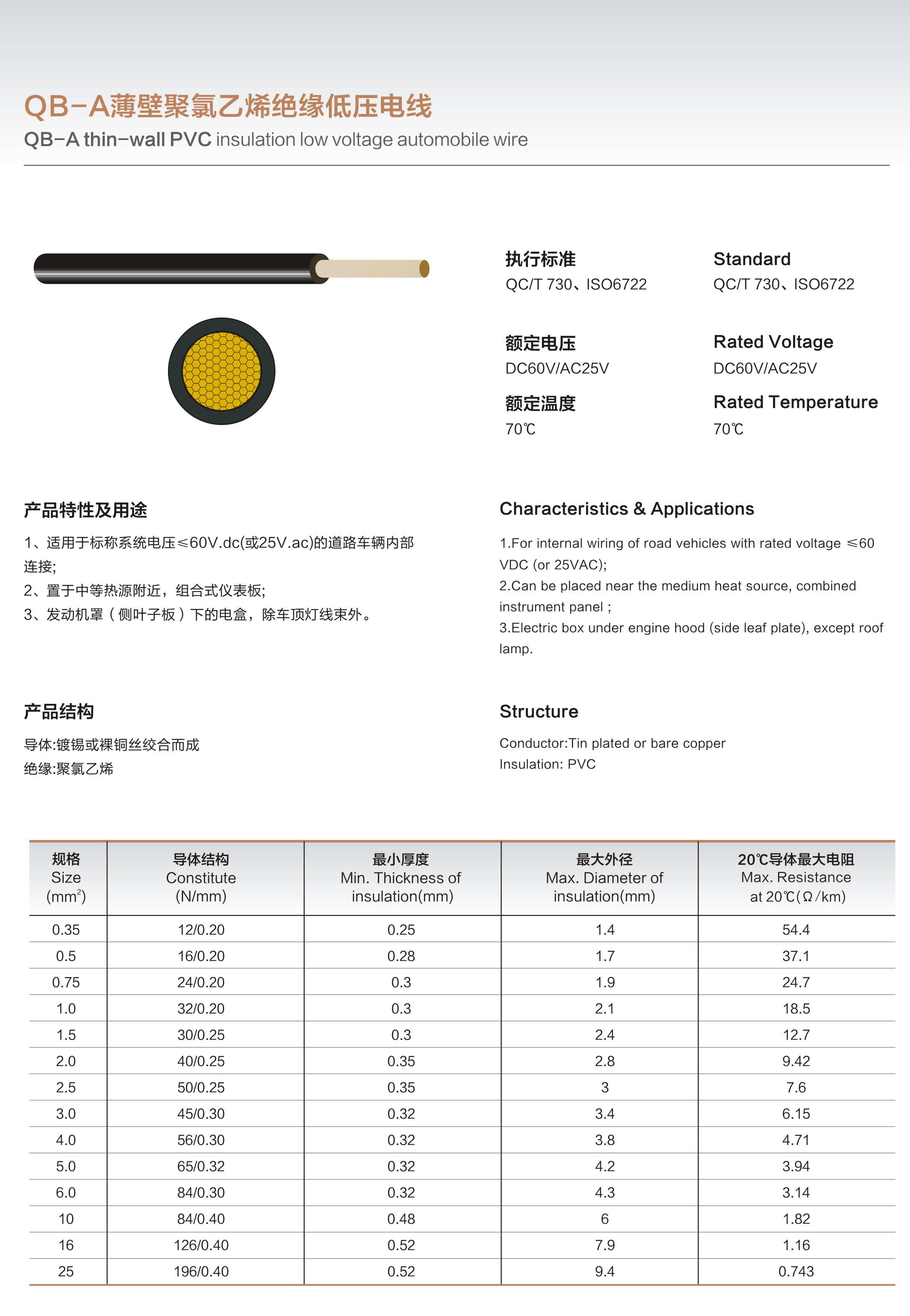 QB-A薄壁聚氯乙烯绝缘低压电线