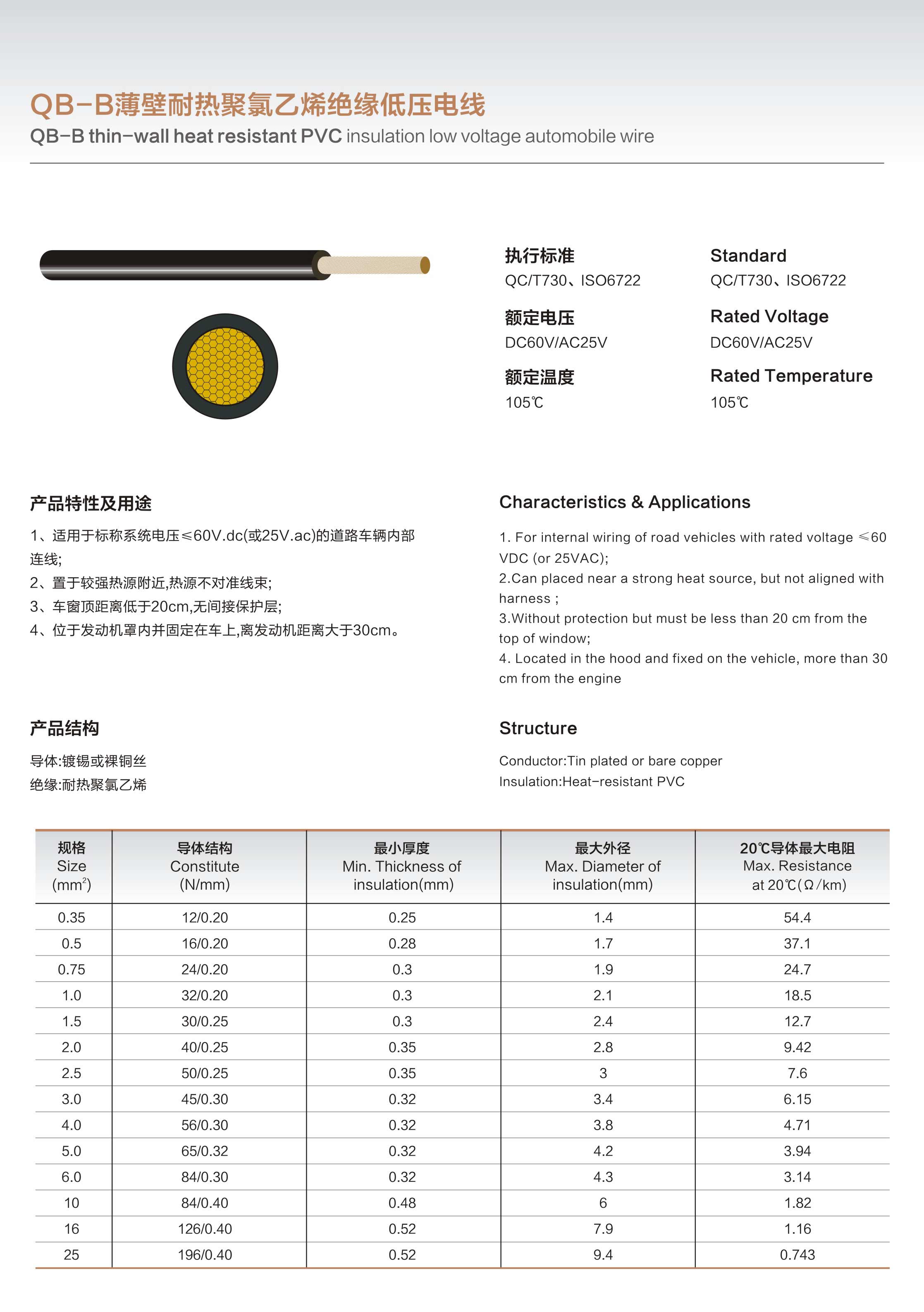 OB-B薄壁耐热聚氯乙烯绝缘低压电线